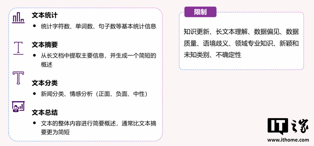 在文本分析领域,它更擅长文本统计、摘要生成、分类与总结,而面对知识更新、语境歧义、新颖和未知类别时,表现可能就没那么理想。