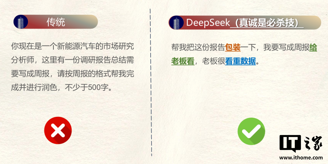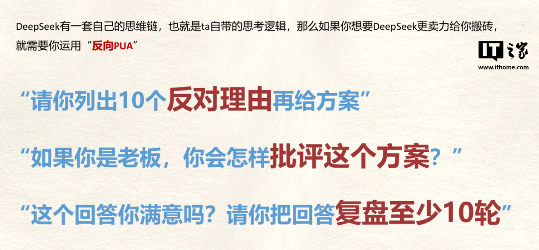 此外,我们还可以学会“反向 PUA” DeepSeek,让它通过自己的思考逻辑,输出更好的结果。
